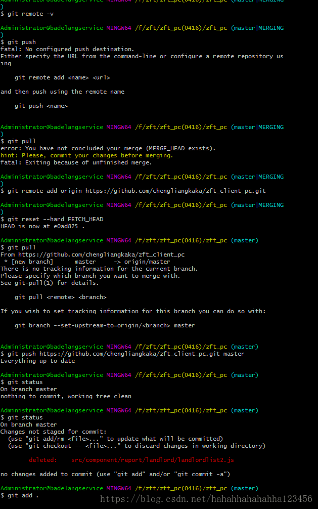 git上传到版本库报错:Pull is not possible because you have unmerged files(已解决